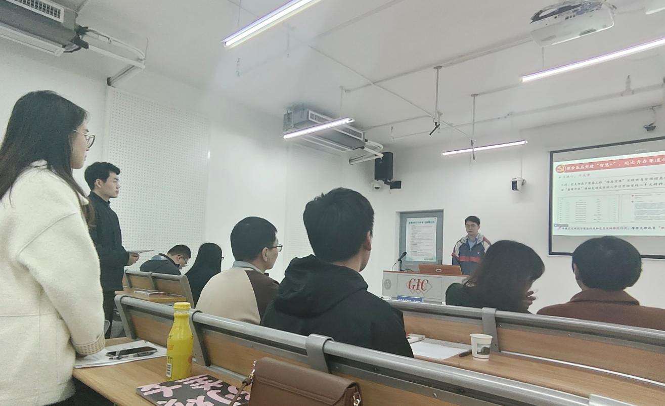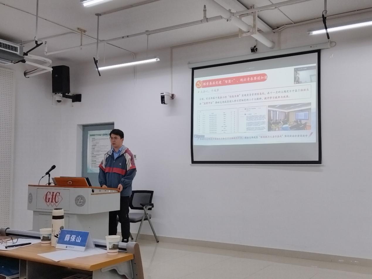 自动化学院控制科学与工程博士生第一党支部的代表陈文虎进行交流分享
