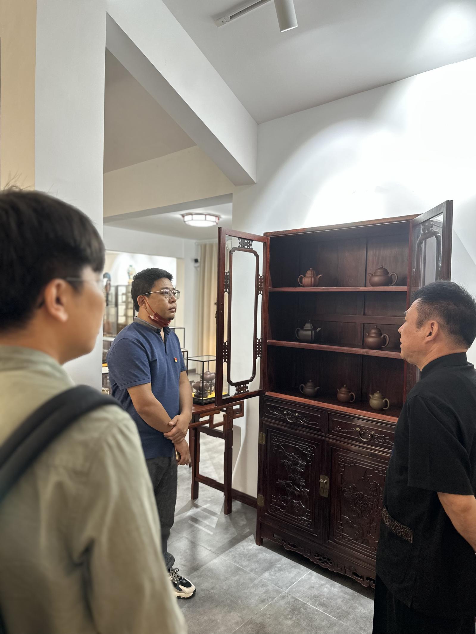 紫砂陶制作技艺产生于宋元,成熟于明代,迄今已有600年以上的历史。紫砂艺术作品的主要原料是由石英、水云母、氧化铁和粘土等成分组成,作为中国非物质文化遗产,具有深厚的生态价值、文化价值、艺术价值和经济价值。江城简要介绍了紫砂艺术设计以及紫砂文化产业的发展情况,并以自身经历分享了创作心得。参观中,党员同志们感受着每件作品鲜明的艺术风格和独特个性,被艺术家的文化积淀、扎实的艺术功底和独特的时代精神所打动。本次参观活动促进弘扬地质文化和地质艺术,推动优秀传统文化入脑入心,进一步增强党员干部文化自信,也为学院推进中华优秀传统文化教育起到很好的启发和素材积累,努力为推动中华传统文化创造性转化、创新性发展,为提升中华优秀传统文化的生命力与影响力贡献力量。