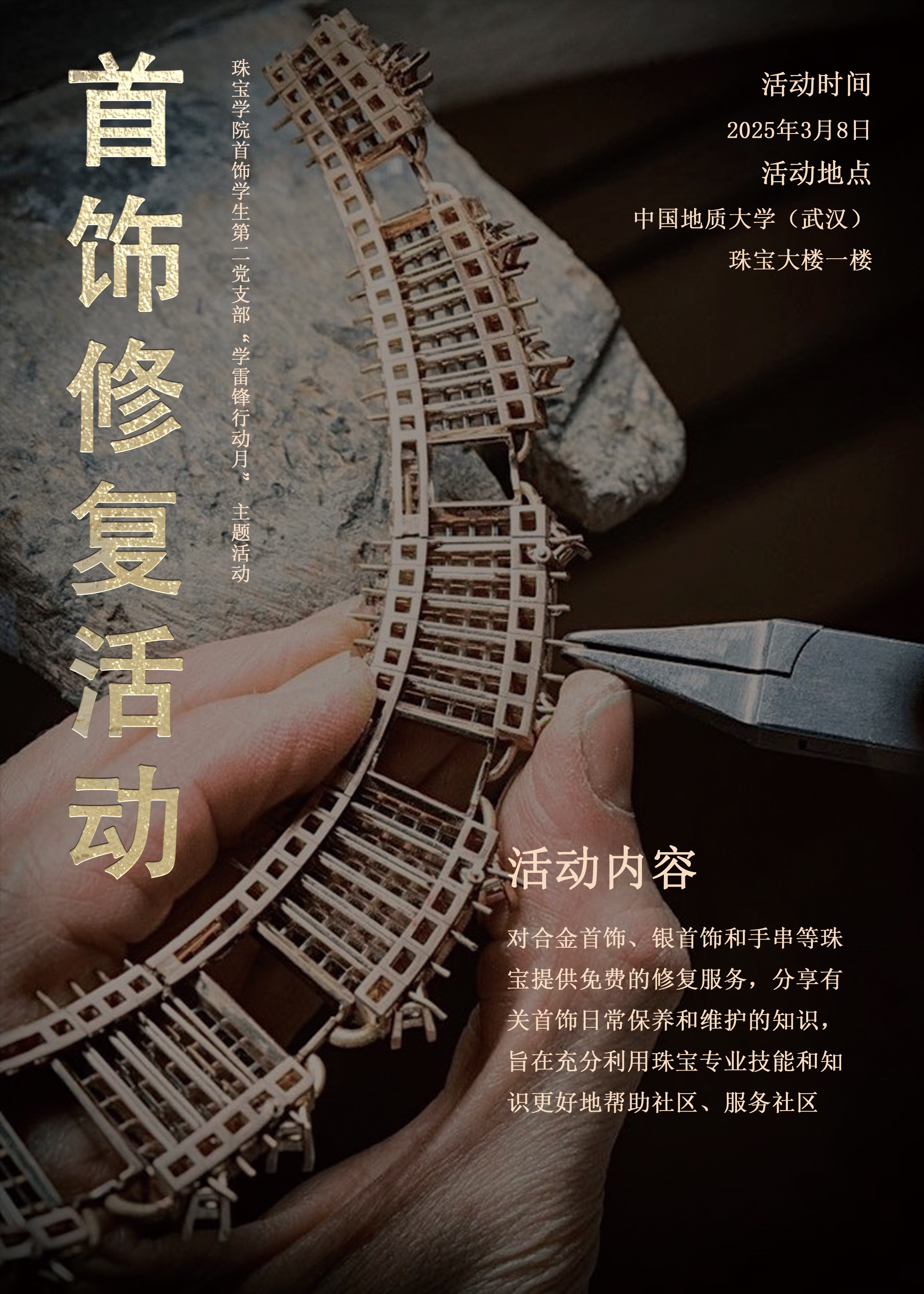 在毛泽东等老一辈革命家为雷锋同志题词60周年之际,为进一步弘扬新时代雷锋精神,践行“奉献、友爱、互助、进步”的志愿服务理念,高h小说 首饰学生第二党支部于3月8日举办“学雷锋月”主题首饰修复志愿服务活动,以实际行动诠释雷锋精神,将党的二十大精神落到实处。
