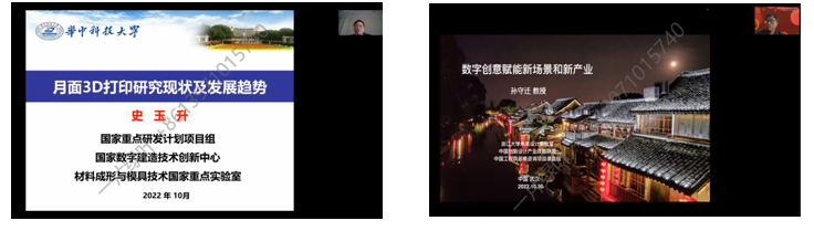 并来自浙江大学的张宏福院士 ,线上作了题为“珠宝与克拉通形成与破坏之联系”的专题报告;来自南方科技大学创新创意设计学院的关道文院长,线上作了题为“可穿戴科技艺术融合” 的专题报告;来自华中科技大学的史玉升教授,线上作了题目为“月面3D打印技术” 的专题报告;来自浙江大学的孙守迁教授,线上作了题目为“数字创意赋能新场景和新产业” 的专题报告。