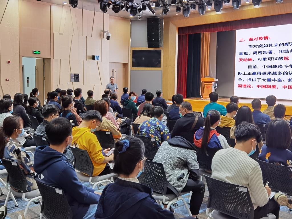 薛保山主持强调,全院干部师生要认真学习领会王华副校长的授课,积极实践伟大的抗疫精神,不断增强“四个自信”,敢于拼搏,敢于创新,敢于担当,抓细抓实常态化疫情防控和教育教学工作,坚实践行伟大梦想。