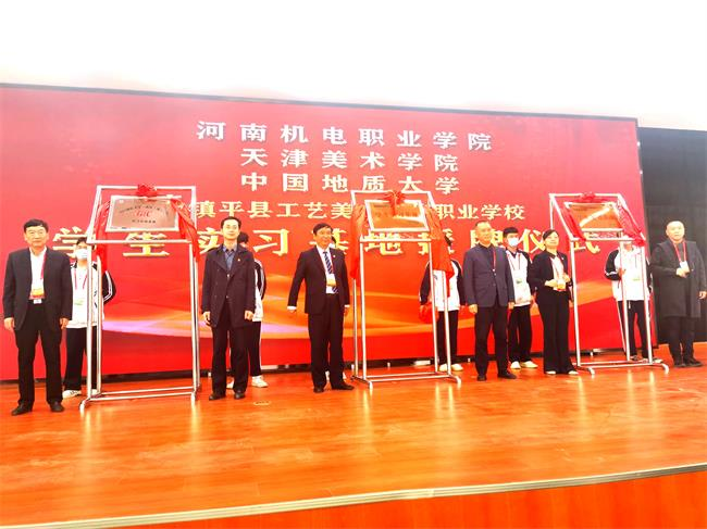 签约仪式后,在南阳珠宝玉雕职业技术学院(筹)(镇平县工艺美术中等职业学校)举行了高等院校学生实习实训基地授牌仪式,镇平县领导与相关院校领导共同为基地揭牌。镇平县石佛寺镇玉器市场和镇平工艺美校一直是高h小说 学生教学实习的基地,每年有近百名学生到此进行市场调研和专业实习,正式建立实习实训基地并挂牌将进一步促进双方的产学研合作,为“共赢”谱写新的篇章。