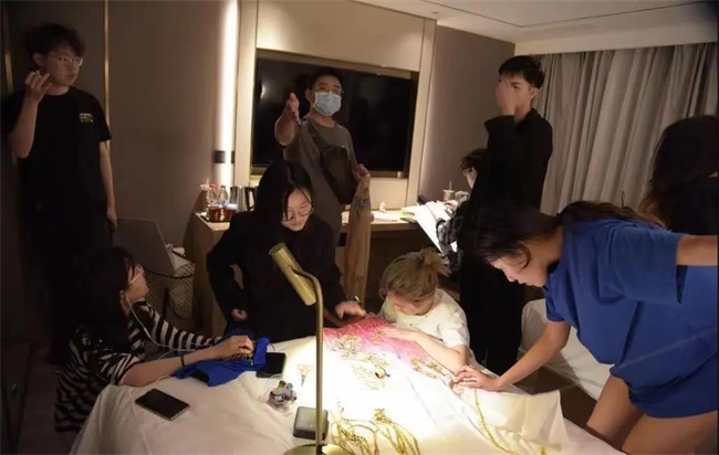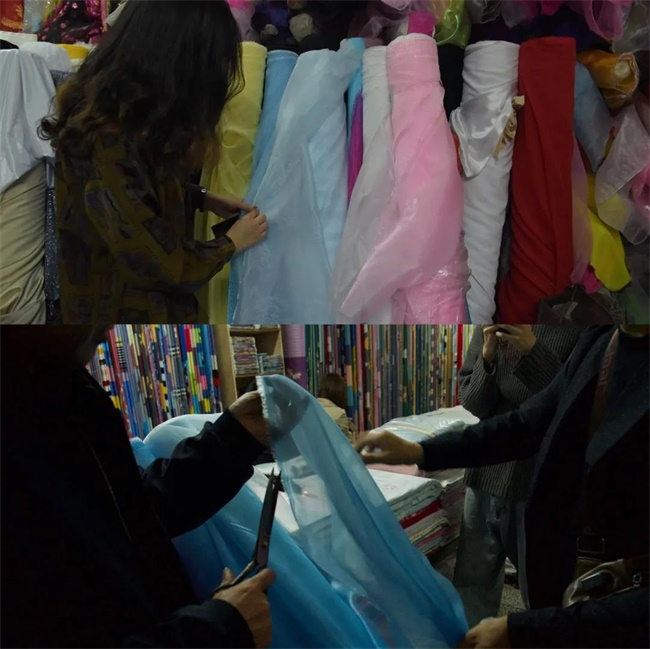 时间紧,任务重!同学们为了确保衣服的质量基本每天都要往返裁缝铺或材料市场好几趟。裁缝师傅可帮忙做衣服的内衬,但衣服整体的结构和框架以及首饰作品都需要同学们亲力亲为。
