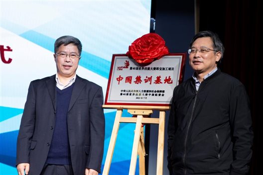 在省人社厅职建处王进军处长宣读了人社部《关于确定第46届世界技能大赛中国集训基地的通知》。董长麒副厅长和王华副校长共同为第46届世赛珠宝加工项目中国集训基地揭牌。