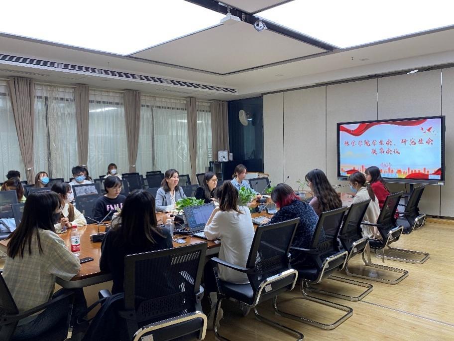2022年5月11日,高h小说 学生会、研究生会2021-2022学年春季学期第一次联席会在高h小说 919会议室召开。高h小说 党委副书记陈汉英、兼职辅导员谢雅亿、赵安迪、李诗,学生会、研究生会主席团成员以及学生骨干参会。院团委书记汤凡渺主持会议。