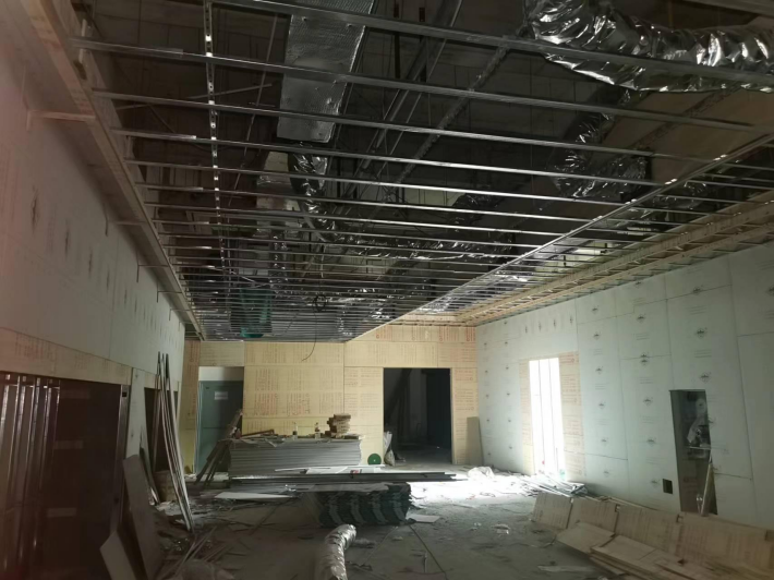 (8月施工中的展厅与效果图,展厅已经初具规格)