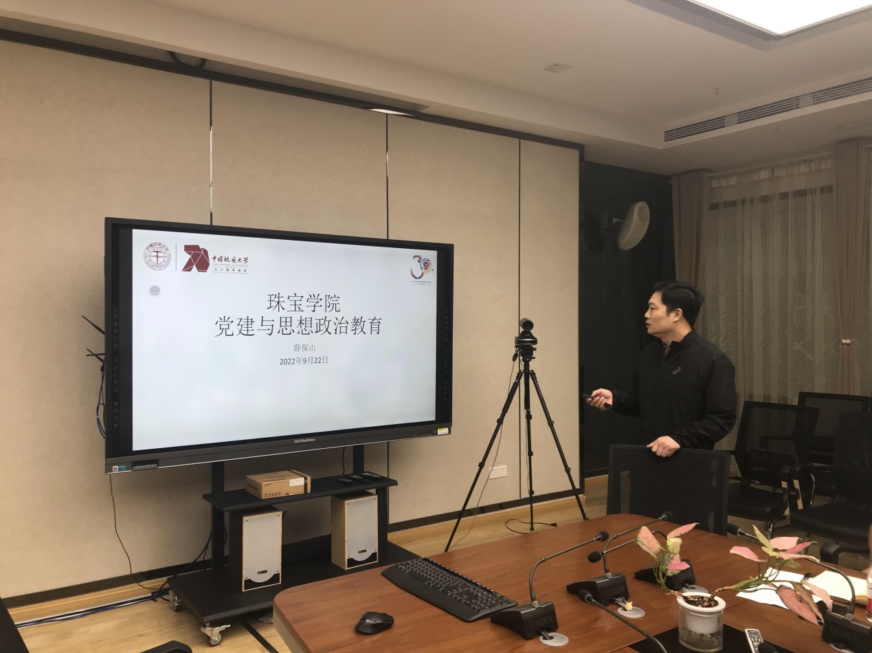 院党委书记薛保山就学院党建与思想政治教育工作情况进行了汇报。薛保山从高h小说 教职工基本情况、党的建设、党风廉政建设、巡视巡察工作、存在的问题和不足等五个方面作了详细汇报,并提出工作建议。