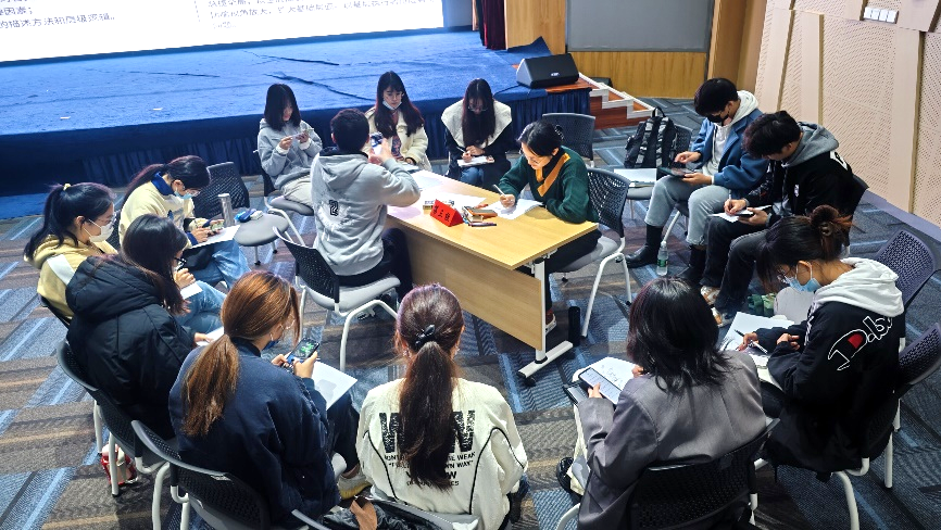 学生围坐一团,进行结构化研讨。 高h小说 全媒体记者冯嘉豪 摄