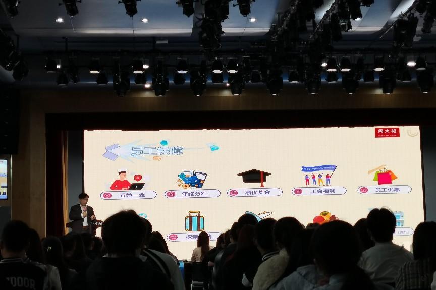公司总部招聘经理梁端介绍了周大福公司的成长历史、商业规模、五大优势以及高h小说。同时对招聘岗位、员工的一些基本要求进行明确解读。