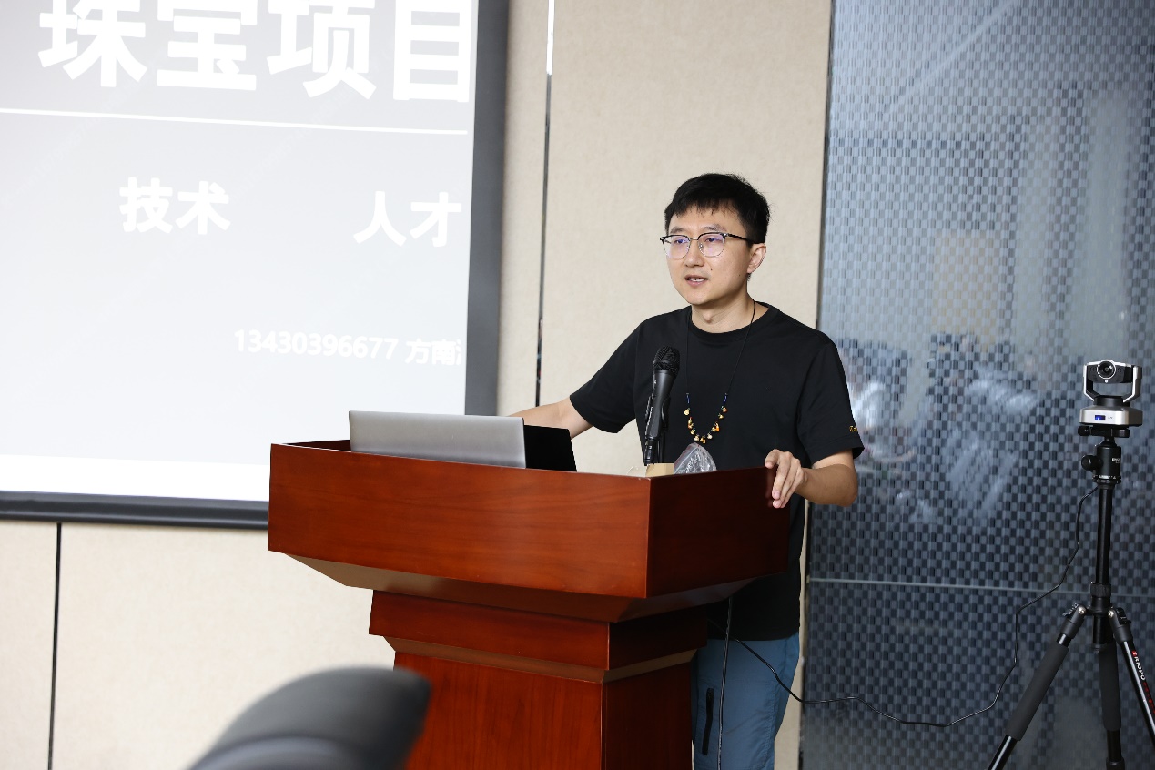 第七场报告由深圳龙岗珠宝协会方南海以“智能制造和潮玩文创在珠宝领域的商业价值”为题从介绍自己和团队如何从珠宝行业入手,分享了关于消费品牌、投资技术以及人才培养等关键词的思考。并在演讲中提到了珠宝行业与美妆和服装等行业的对比,认为珠宝行业具有独特的优势。同时,讲者也关注了珠宝行业未来的发展,询问了听众是否会继续从事该领域工作。最后,以皮尔卡丹为例,强调了珠宝行业的重要性和价值。