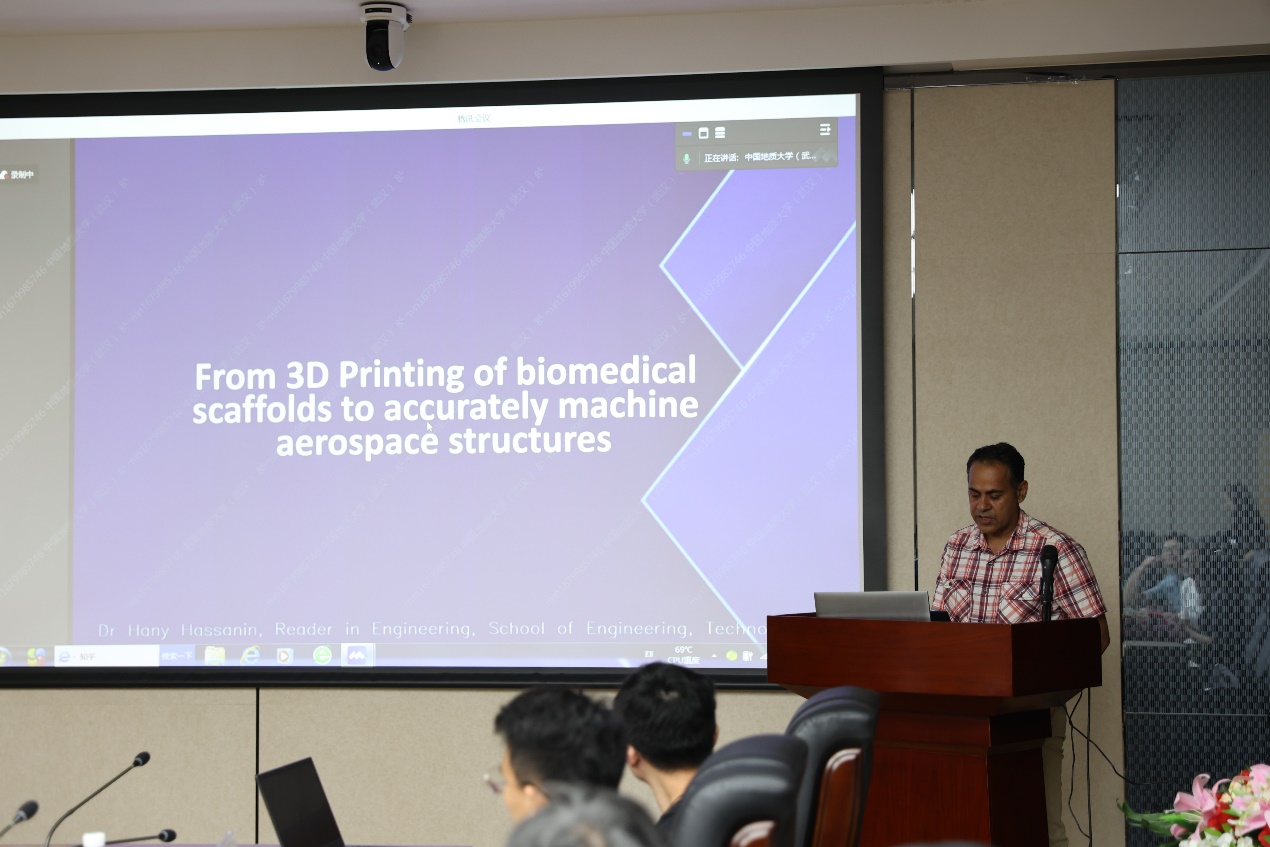 第二场报告由英国伯明翰大学Hany Hassanin 教授以“Advanced manufacturing from 3D printing of biomedical scaffolds to accurately machine aerospace structures”为题进行分享。报告介绍了一种将先进制造技术应用于生物医学领域的研究项目,探讨了如何通过3D打印技术来制备人工骨材料,以改善人类骨骼的性能,为骨折愈合和再生提供了一种潜在的解决方案,接着介绍了材料设计、工艺优化和机器人制造方面的应用,同时还探讨了能源系统和X射线技术在工业自动化和机器人制造中的应用以及有关传感器的技术。