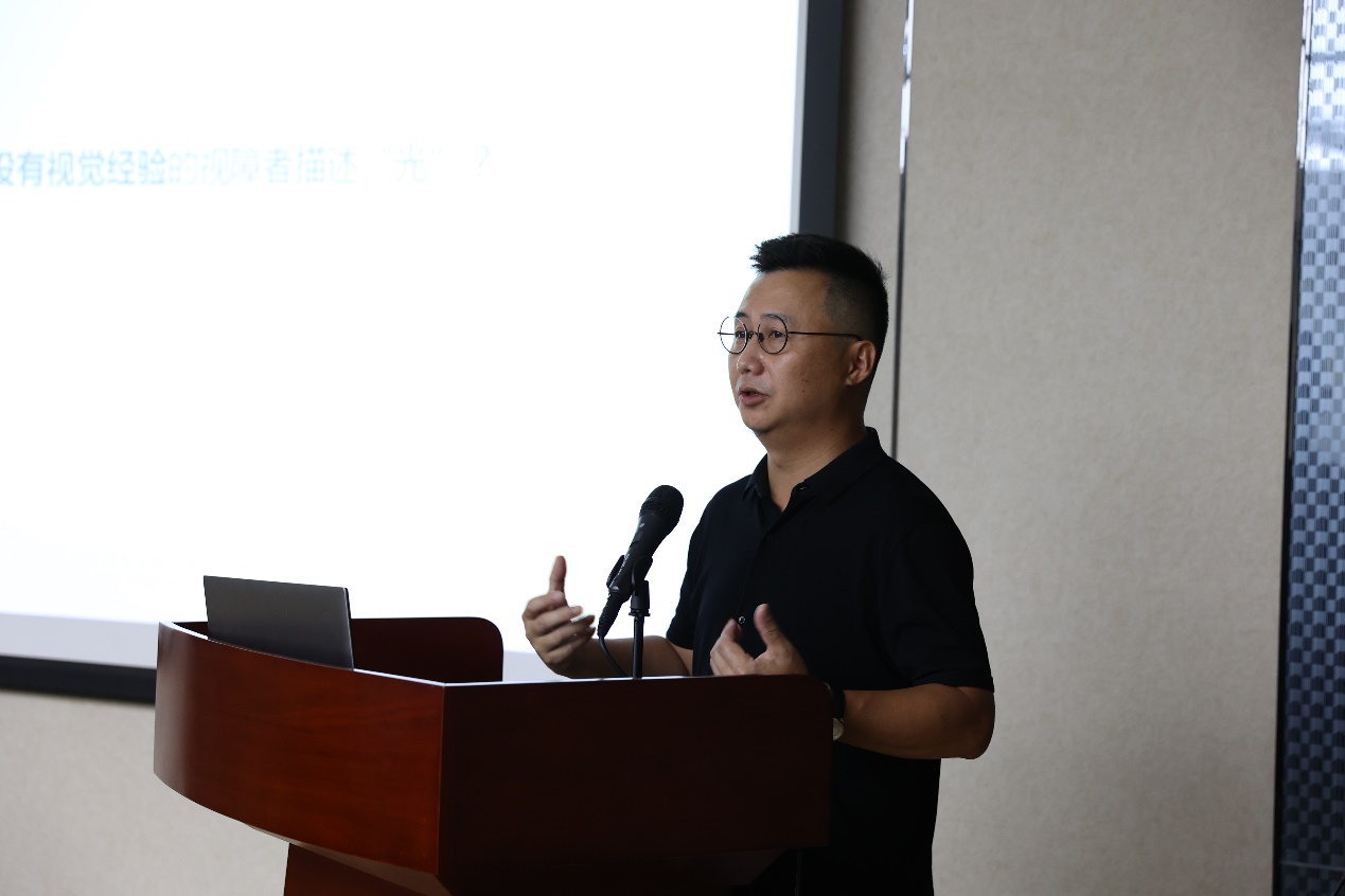 第四场报告由武创院企业创新中心李昱谷以“数字制造与艺术”为题开展,报告指出不同的艺术载体都有其独特的内核和表现形式,艺术创作中的色彩与光影的关系极其重要,以雕塑、绘画等艺术形式为例讲解了如何通过分解形体和色彩等方式进行思考和创新。基于数字技术的应用,如AR、VR等技术可以更好地创造出更加具有视觉冲击力的作品的特点,李昱谷介绍了VR沉浸设计的实现过程。同时展示了其团队的VR音乐游戏研发项目,并介绍了研发过程中遇到的挑战以及对应解决方案。在报告最后,李昱谷表示数字技术为文化内涵的挖掘提供了更广大的应用空间。