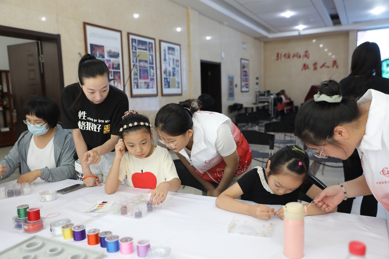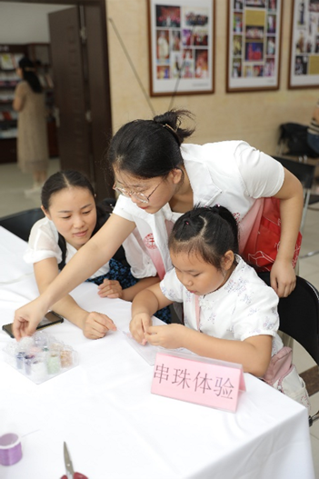 图 8 志愿者引导小朋友串珠
