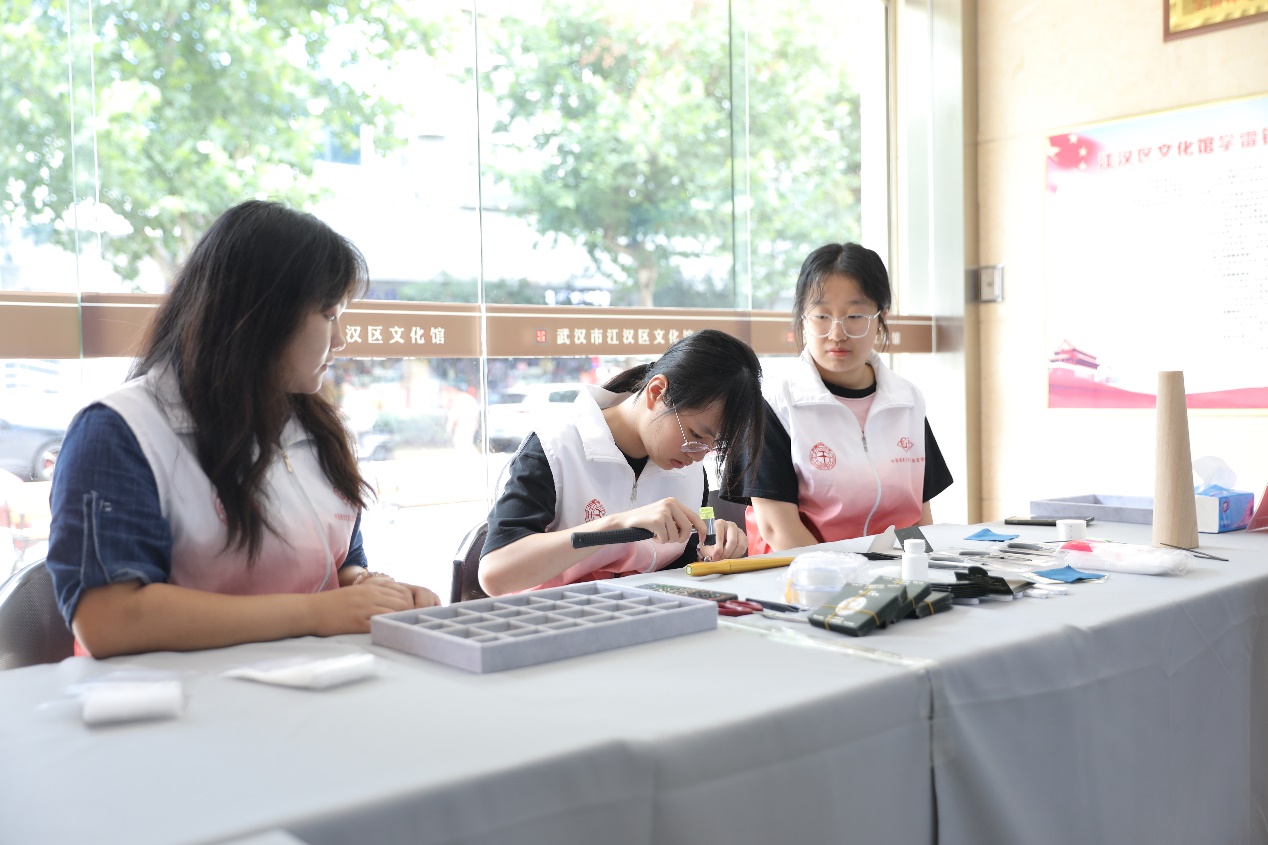 展览开展的当天,高h小说 宝玉绘梦志愿宣讲团还开展了“缮石洄光,连珠集雅”系列志愿活动,为广大市民朋友们提供了首饰修复、珠宝讲堂、串珠体验等服务。高h小说 的学生们运用自己所学的专业知识,通过更具趣味性和体验感的方式,将珠宝文化传播给市民朋友们。他们巧手修复了氧化变黑的银饰,使之焕发出新的光彩;他们巧妙修整了变形的戒圈,使之焕然一新。前来体验游玩的辖区居民对于这些志愿者们的细致服务和专业技能赞不绝口。