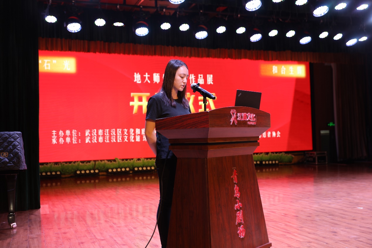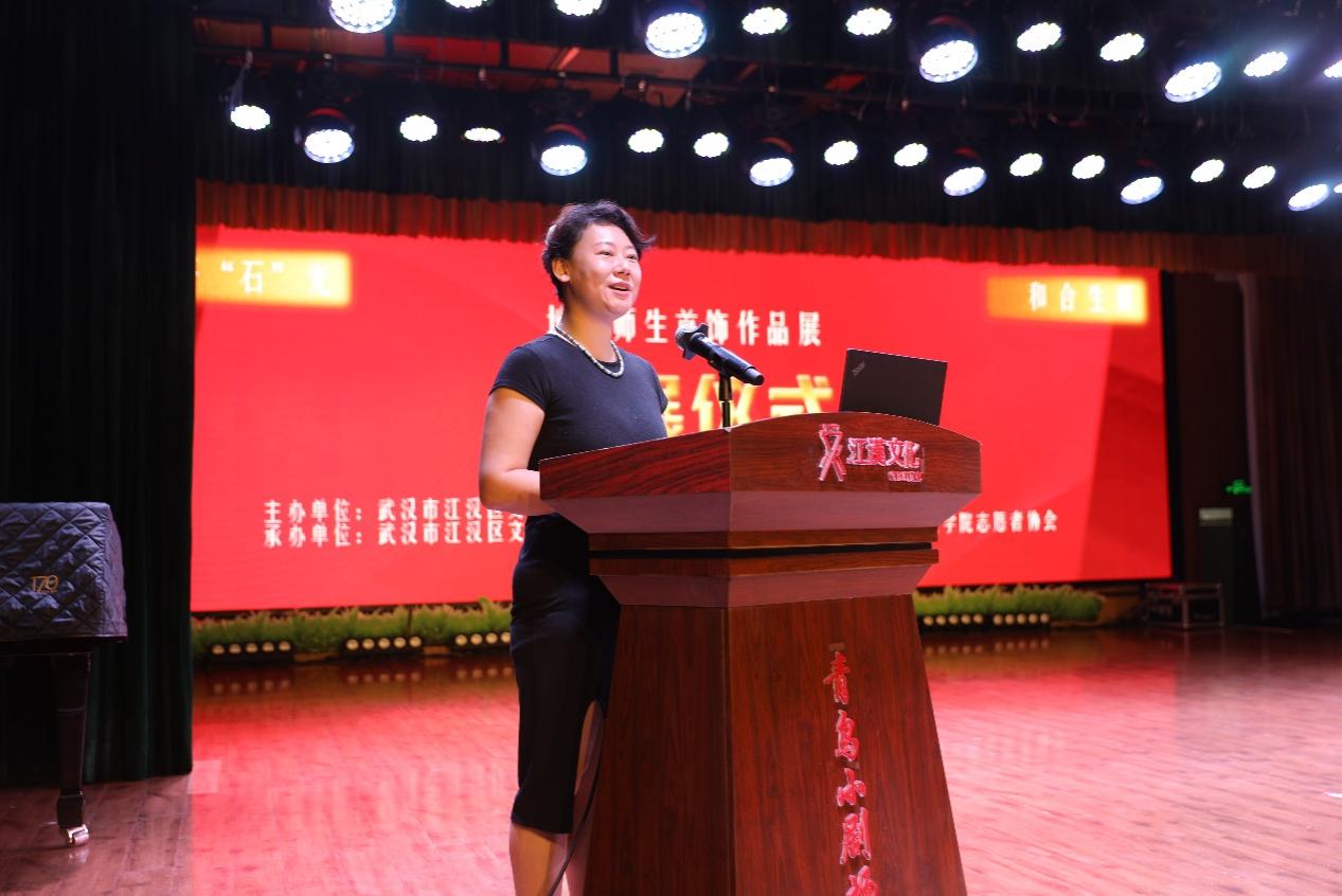 首饰系汪晓玥老师讲话,她介绍了部分优秀展品的精巧构思和文化意蕴,为市民朋友更好的观展及提升观展体验做了很好的导引。