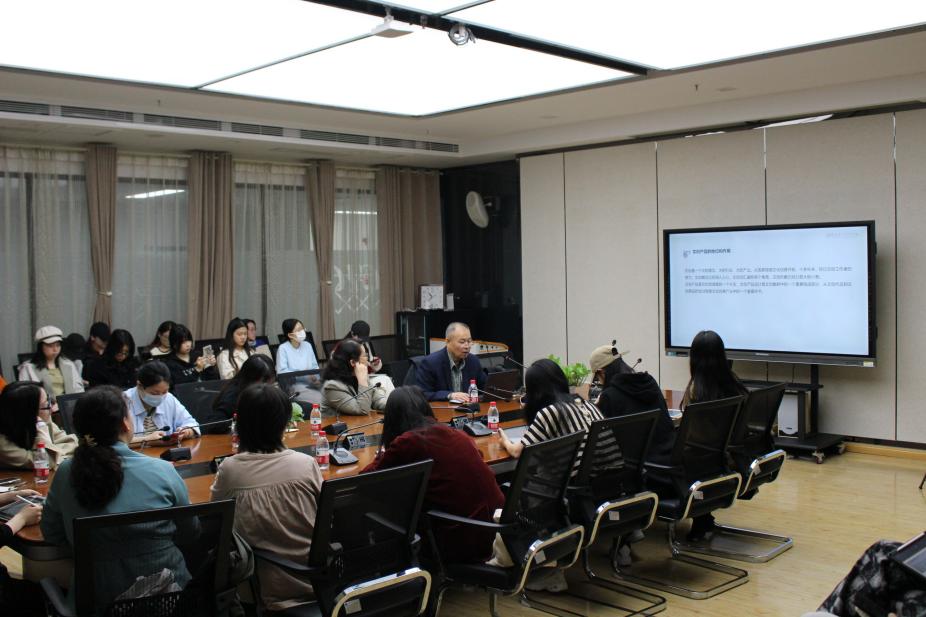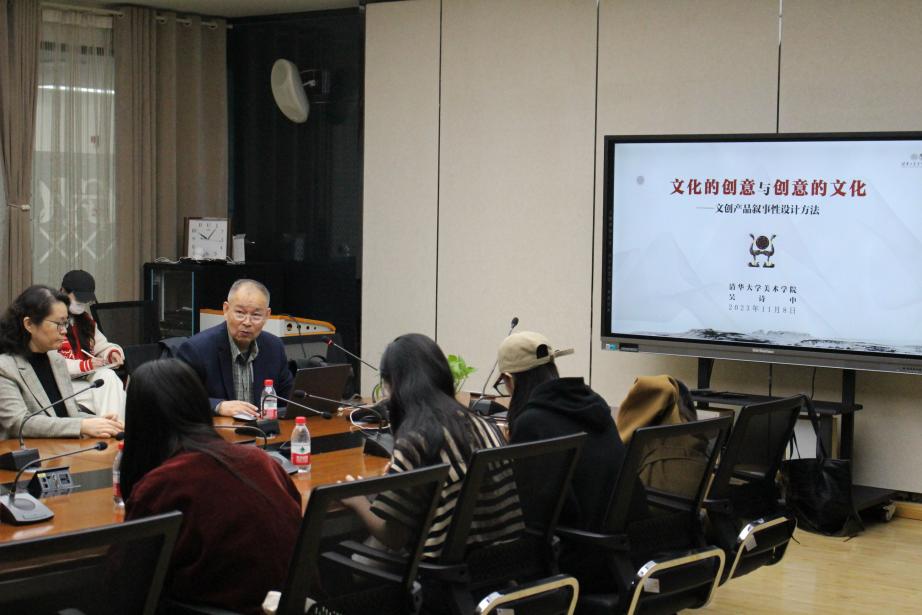 吴诗中教授在珠宝楼919会议室以《文化创意与创意文化——文创叙事性设计方法》为题做主题讲座。吴教授提出,我国文化资源丰富,文创叙事性设计是运用叙事性设计方法讲好文创故事。新技术赋能文创设计是当前时代所趋,文创设计应突出文化资源保护。
