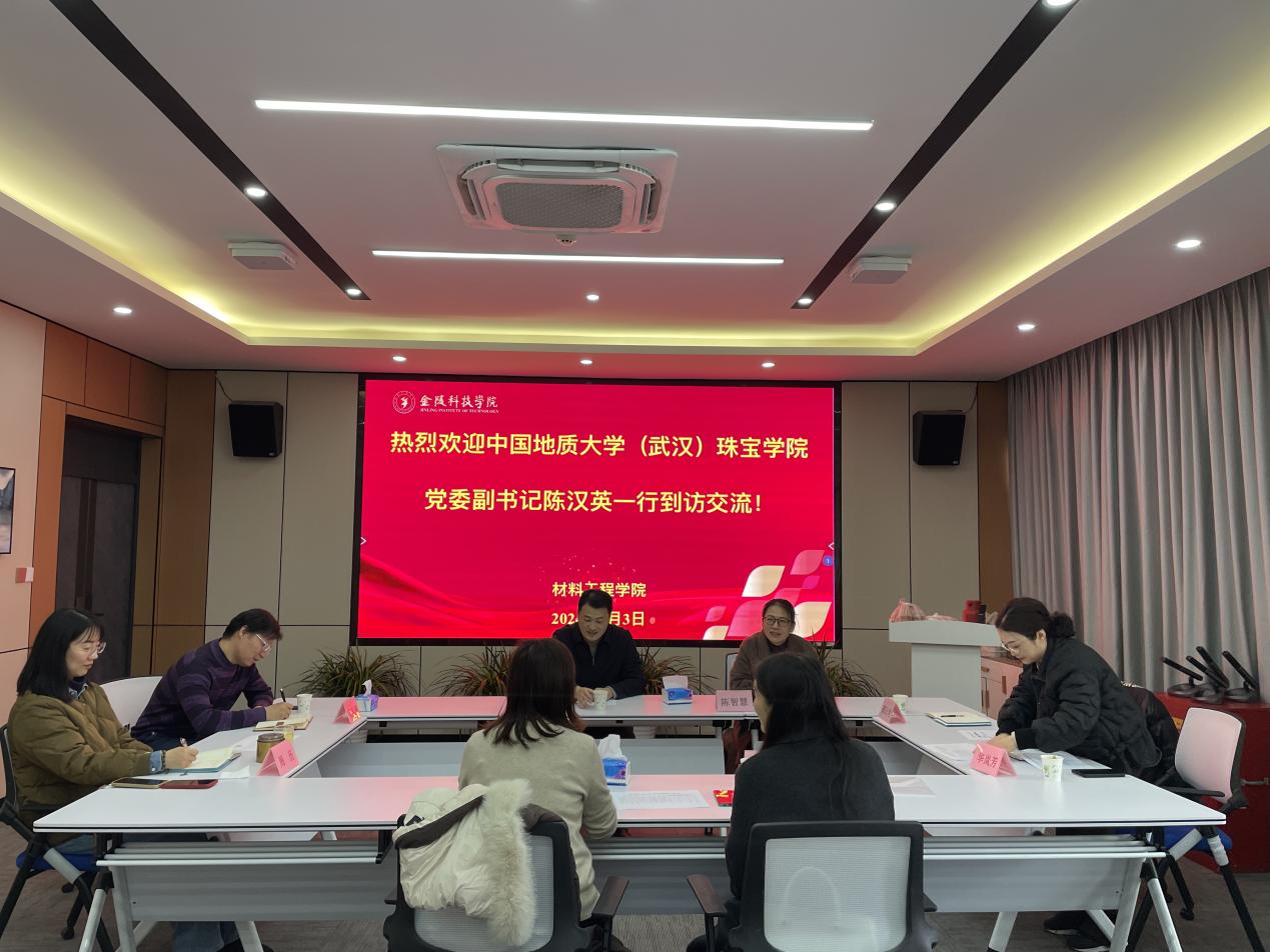 2024年1月3日,高h小说 党委副书记陈汉英、辅导员汤凡渺老师赴南京到金陵科技学院调研交流、看望校友。金陵科技学院材料工程学院党委书记叶原丰、党委副书记陈智慧、辅导员教师,珠宝系教师、高h小说 校友蔡逸涛、周历参加调研座谈会。