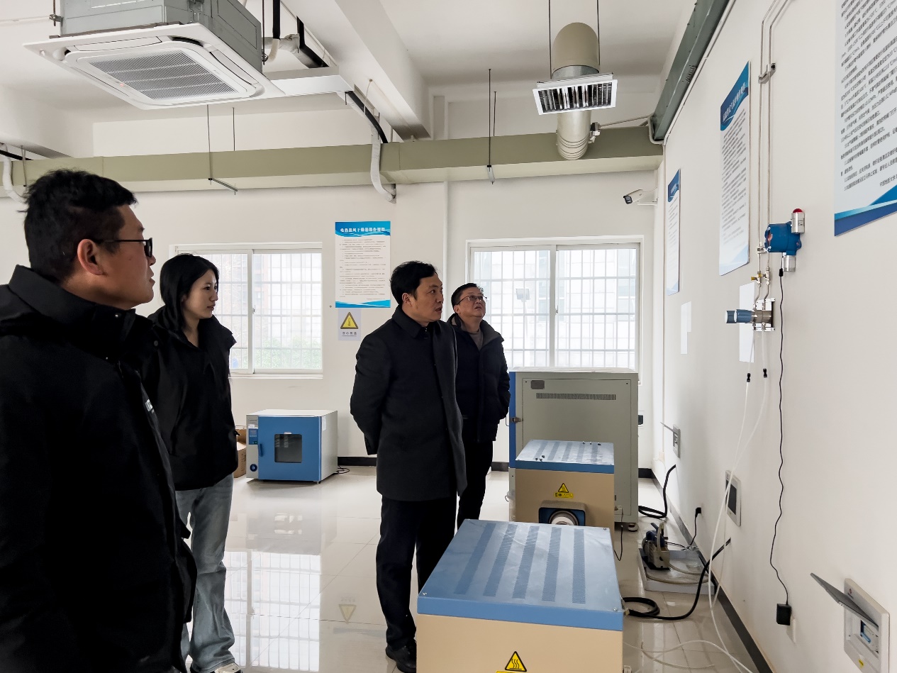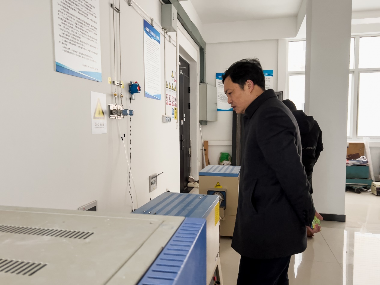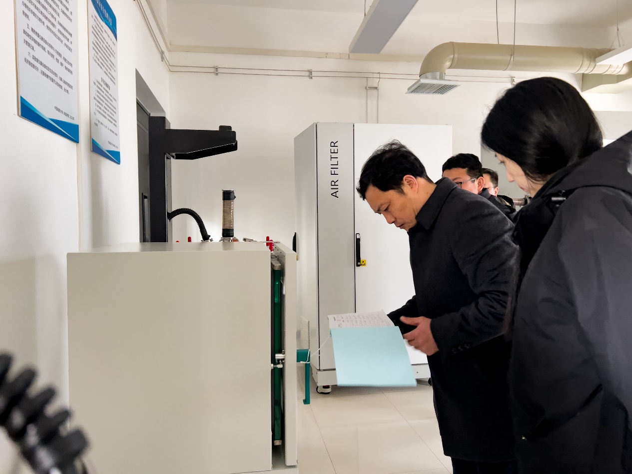 薛保山一行先后听取相关实验室负责人员工作汇报,实地走访了晶体生长实验室、X-CT扫描仪实验室、首饰工作坊、宝石优化及高温珐琅实验室和化学合成与处理实验室等,检查了大型仪器设备实验室的消防安保工作落实情况。