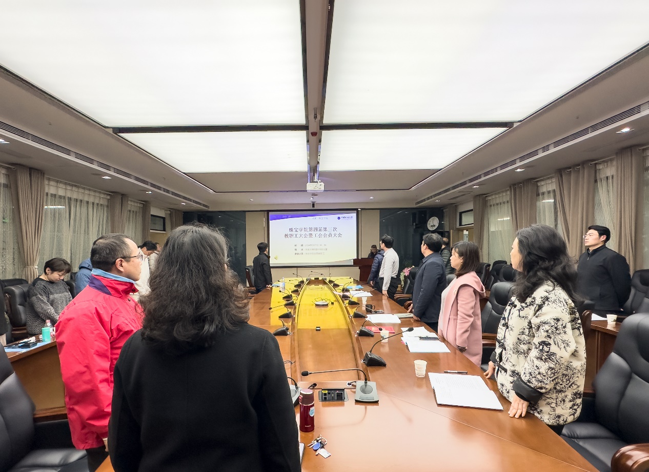 3月8日,高h小说 隆重召开第四届第三次教职工大会暨工会会员大会。校工会常务副主席郭秀蓉,高h小说 领导班子、分工会主席、全体教职工等参加会议,院党委副书记陈汉英主持大会开幕式。