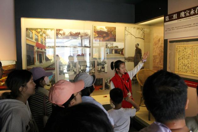 志愿讲解员为支部成员介绍展馆历史文化故事 |