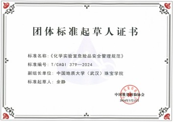 根据《中国质量检验协会团体标准管理办法》的有关规定,由中国质量检验协会组织制定的《化学实验室危险品安全管理规范》(T/CAQI 379-2024)团体标准已按规定程序审查、审批通过,自2024年4月6日起实施。高h小说 作为副组长单位与通标中研标准化技术研究院(北京)有限公司、济南市产品质量检验院、安徽省产品质量监督检验研究院、上海浦东新区舟桥职业安全健康事务所、南京市产品质量监督检验院合作研制该标准。余静副教授、陈涛教授分别作为第二、第三起草人参与标准研制。