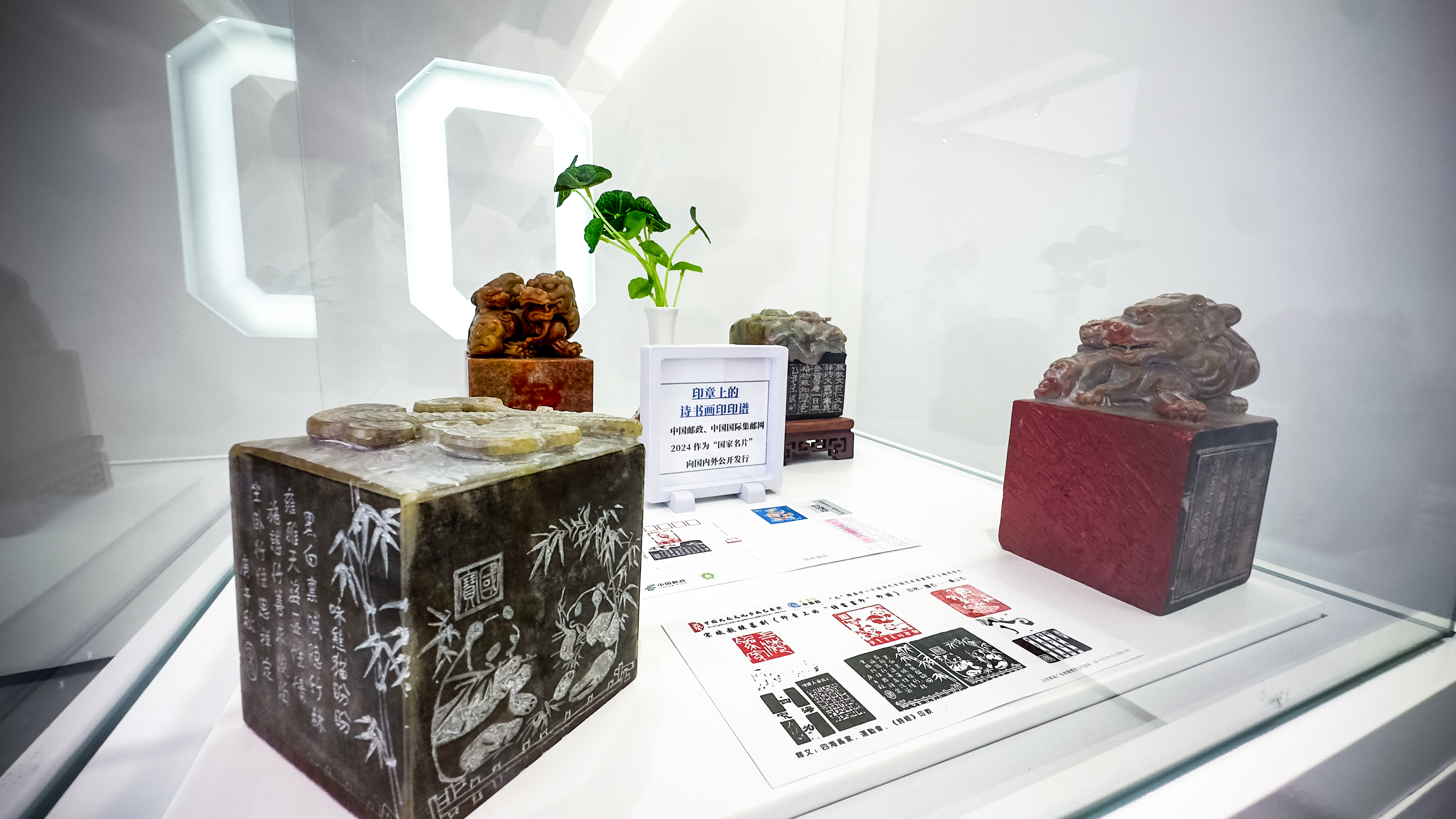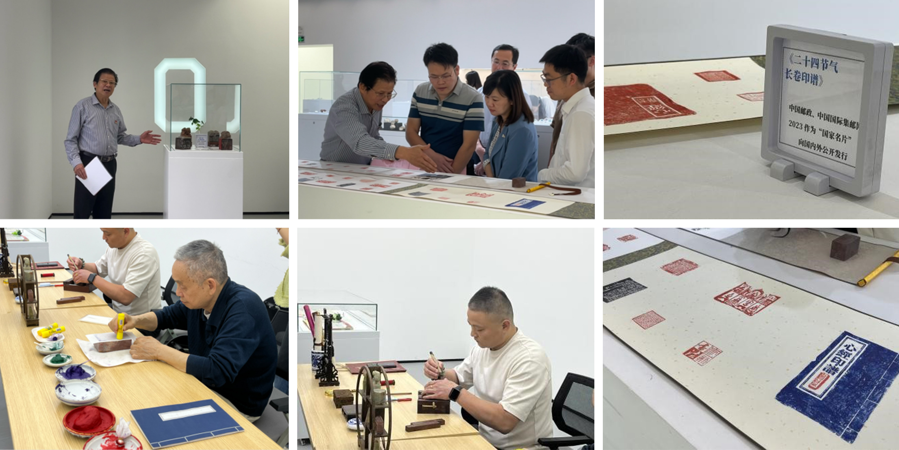宋斌教授带领参加开展仪式的师生参观了玉石篆刻作品并进行了现场讲解,,并现场演示了玉石篆刻过程以及玉章拓印过程。现场展出的二十四节气印谱、诗书画印印谱、世界七大奇迹印谱等精美作品,体现出篆刻艺术的独特魅力,让观众们深刻感受到中华优秀传统文化的博大精深。