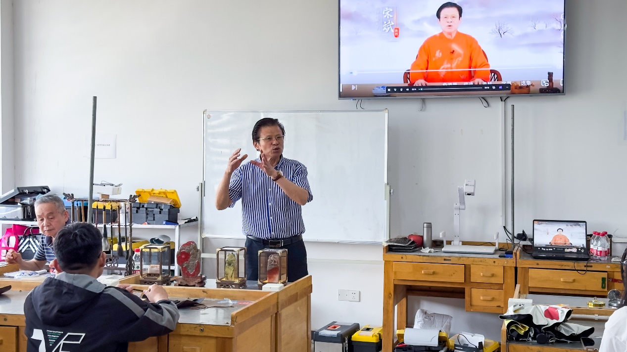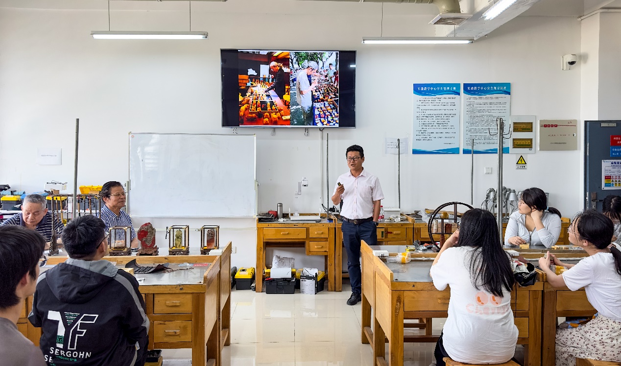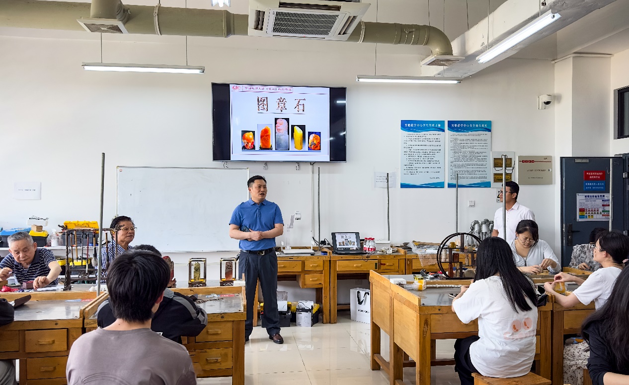 为深入学习贯彻习近平新时代中国特色社会主义思想,加强高h小说 中华优秀传统文化传承基地建设,5月15日,高h小说 玉文化社团、多艺心灵工坊在学院党委的指导下在珠宝楼1106室举办了非遗系列“玉石篆刻文化体验营”活动。高h小说 宋斌教授,高h小说 党委书记薛保山、副书记陈汉英、宝石系副主任王朝文、辅导员汤凡渺和曹佳乐出席了本次活动,来自全校的三十名学生参加了本次活动。