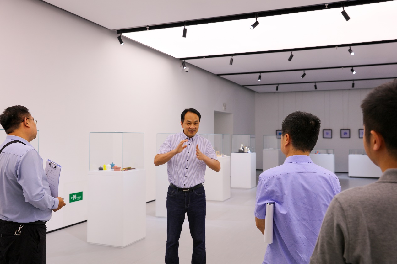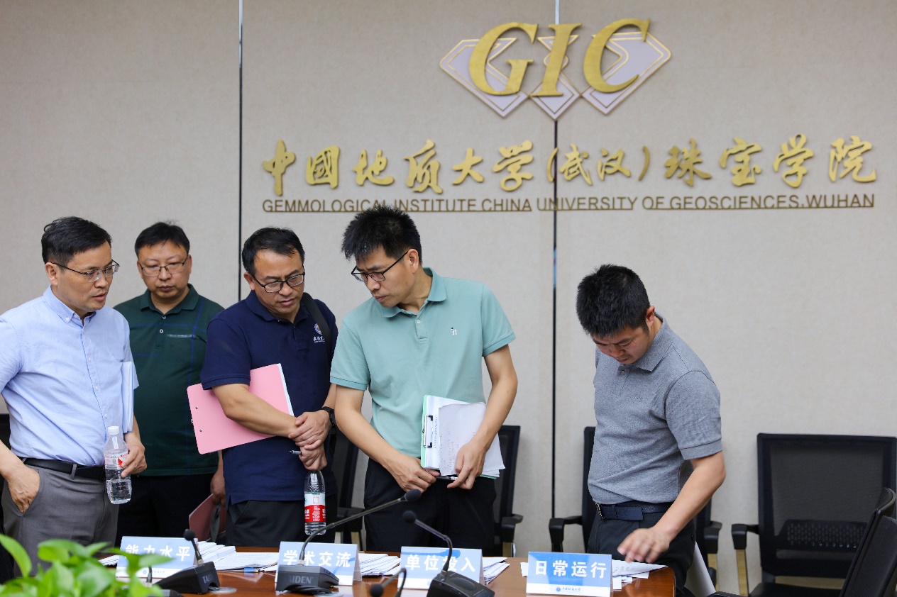 5月29日上午,武汉相关高校和研究院所专家调研湖北省重点人文社科重点研究基地---珠宝首饰传承与创新研究中心。高h小说 科学技术发展院黄祥嘉院长陪同武汉相关高校、科研院所专家调研,高h小说 院长尹作为、副院长张荣红和社科基地主任杨明星等参加调研。