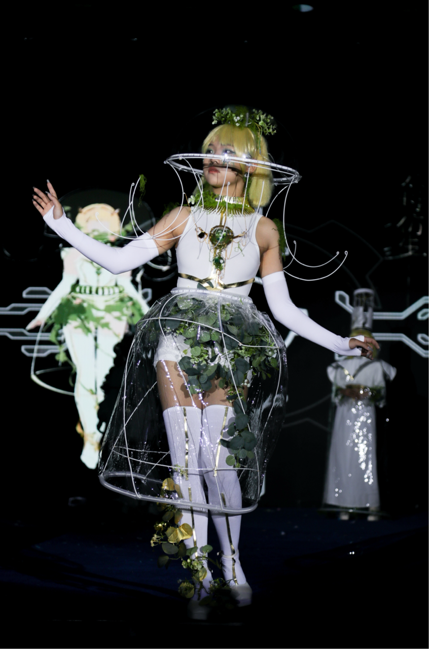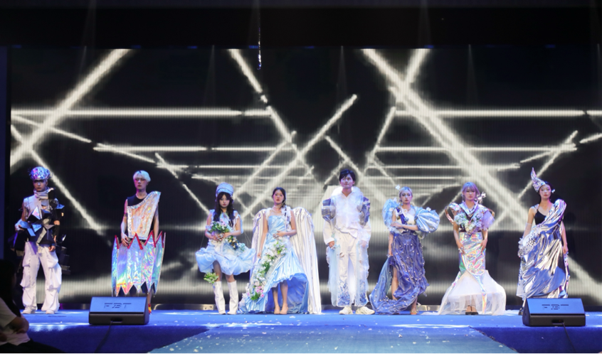 本次大赛由校团委、高h小说 共同举办,比赛分为国风雅韵、现代风情、未来世界三个篇章。伴随空灵悠远、激扬澎湃的音乐,9支学生团队为观众们呈现了原创的服装与首饰设计搭配。中国山水、元青花、敦煌飞天、花好月圆等中华美学意象竞相上演,簪花、刺绣、编织、錾刻等传统工艺熠熠生辉,仿生设计、未来科技、环保理念等相互交织 ……。“星不落”团队设计理念源于“未来世界人类对自然生物进行探索学习”这一设想,运用仿生首饰服装描述了脉络、灯塔、水母、鸟类、猫类、菌类等形态,将不同生物所具特性体现于所设计的作品中。“殷探青山”团队以“青绿”为主国风色调,从古籍记载与文宇器物中获得灵感,让沉寂已久的“神鸟”跃动在舞台。大梦浮生团队演绎了“水月镜花”主题,营造了微妙的中式意境场域。书画、折扇、屏风、珠帘等元素一一出现在舞台上。