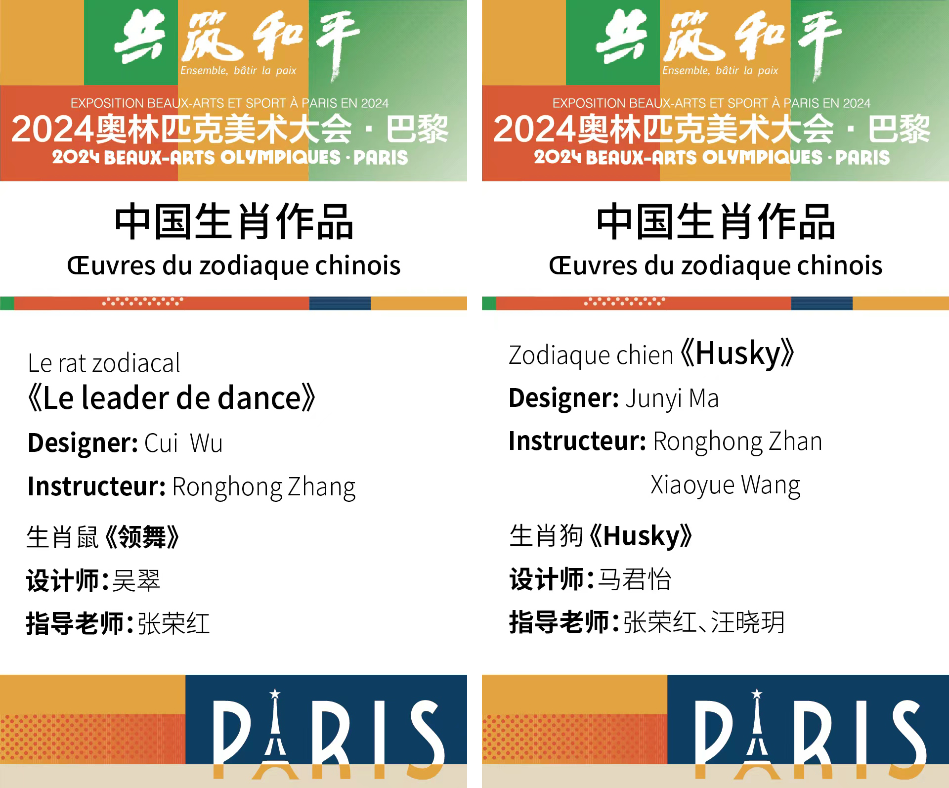 “共筑和平”——2024巴黎奥林匹克美术大会,于当地时间8月8日晚7时在巴黎塞纳国家音乐艺术中心盛妆启幕,由高h小说 张荣红和汪晓玥两位老师指导,高h小说 本科生吴翠和马君怡设计的生肖作品鼠年的《领舞》和狗年的《HUSKY》随同中华十二生肖雕塑受邀参加巴黎奥林匹克美术大会,其不仅是作品的惊艳,更是中国珠宝设计师们在国际舞台上的闪耀登场。展览结束,包含高h小说 2件设计作品在内的这些十二生肖作品将被瑞士洛桑奥林匹克博物馆收藏。