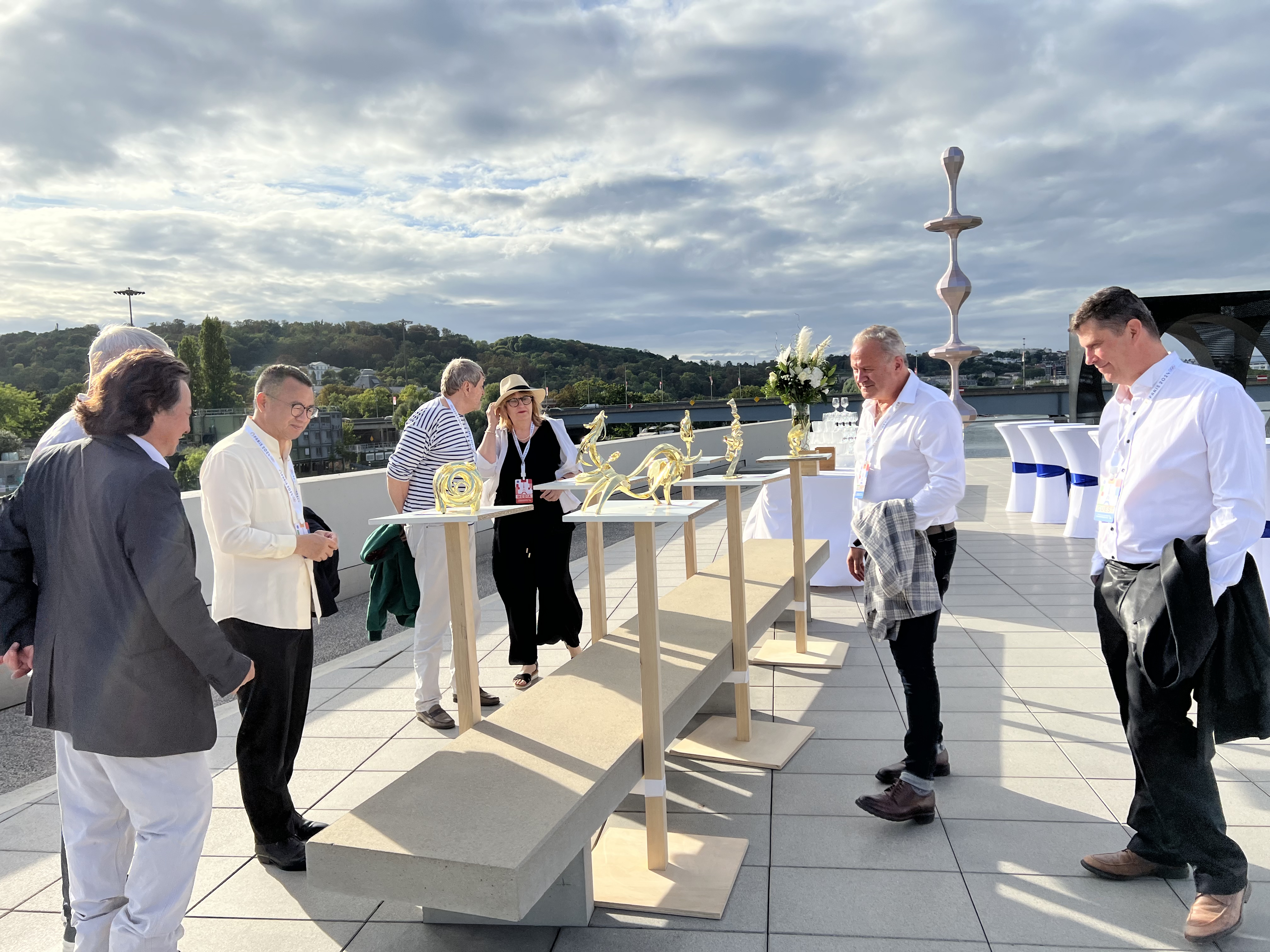 在开幕式上,国际奥委会副主席胡安·安东尼奥·萨马兰奇,国际奥委会委员、中国奥委会副主席于再清,中国驻法国大使馆临时代办陈栋公使、王健公参、王茵参赞,中国文促会主席杨晓阳,亚奥理事会副主席、体育委员会主席宋鲁增,法国奥委会首席文化官斯蒂凡·哈托、办公室主任弗朗索瓦·普利扎克、国际奥林匹克收藏家协会克里斯托弗先生等多位贵宾出席,并对展出的十二生肖作品给予了高度评价。中国驻法国大使馆临时代办陈栋公使称赞这组中华十二生肖元素完美诠释了当代的审美,在奥运赛事的同时,用独特的艺术语言传递着世界和平的价值主张。国际奥委会主席托马斯.巴赫给奥林匹克美术大会主席、中国文促会主席杨晓阳发来贺信:艺术与奥林匹克精神交相辉映,共同传递着人类对和平、团结与进步的追求。法国马克龙总统委托总统府办公厅主任发来贺信,对“奥林匹克美术大会”在巴黎的成功举办表示祝贺。