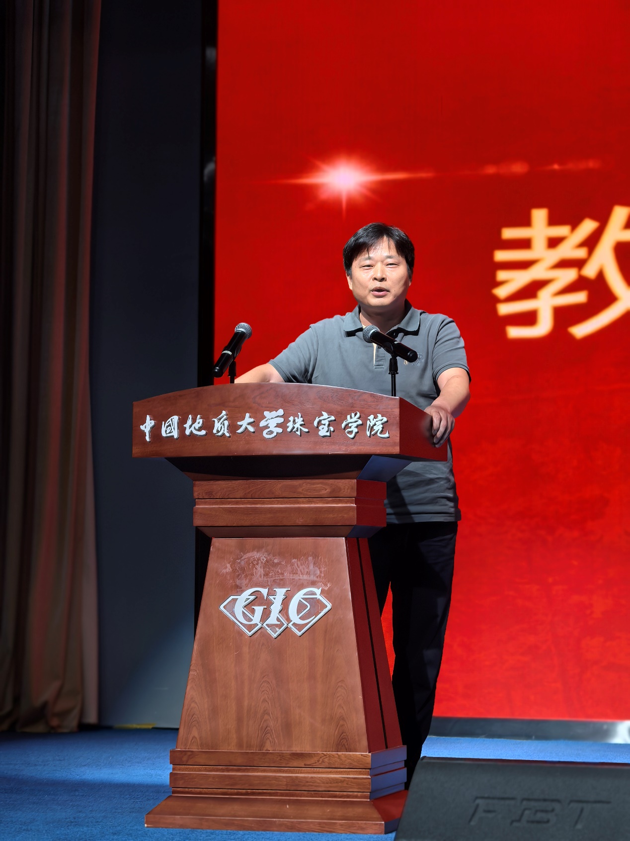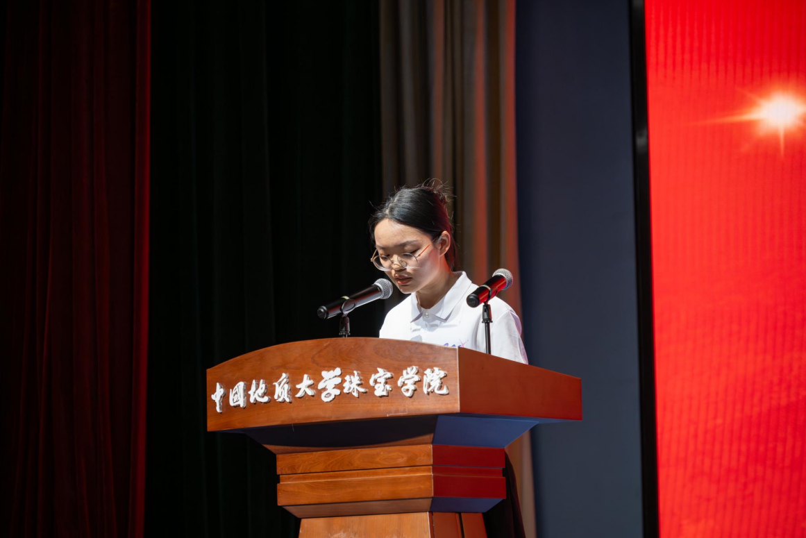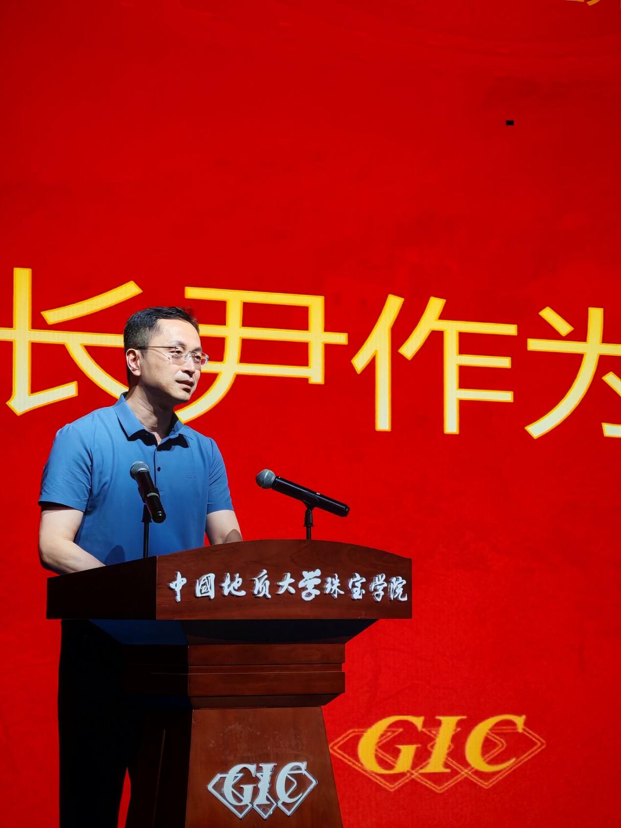 本科生高年级代表李箐纾为同学们提供了学习不停、规划不止、践行不停的建议,道出了AI时代下同学们需要努力的方向和前行的道路。她希望同学们勇于创新,将珠宝和科技紧密结合,让宝石与首饰展现出时代感和文艺感。