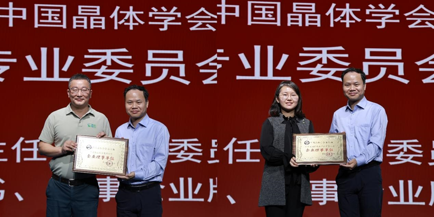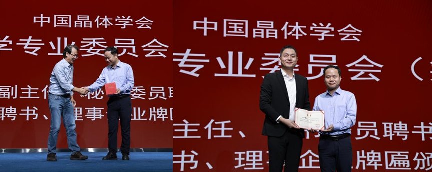 中国晶体学会秘书长孙俊良为线下参会的委员们颁发了中国晶体学会聘用证书、为企业理事单位授牌。
