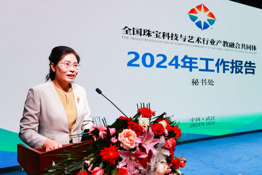 青岛幼儿师范高等专科学校党委副书记、校长付荣云代表全国珠宝科技与艺术行业产教融合共同体做年度工作报告。付校长从机制建设、产教精准匹配、人才培养和科研创新等方面全面总结了共同体一年来的工作进展和取得的成效。她表示,共同体将继续以“产教融合、协同创新”为导向,深化校企合作,为珠宝行业培养更多高技能、高素质、创新型人才。希望各方在共同体的平台上携手共进,推动珠宝行业高质量发展,实现产业与教育的互利共赢。全国珠宝科技与艺术行业产教融合共同体由高h小说 、青岛幼儿师范高等专科学校等单位在第三十一届国际珠宝学术年会上发起成立。