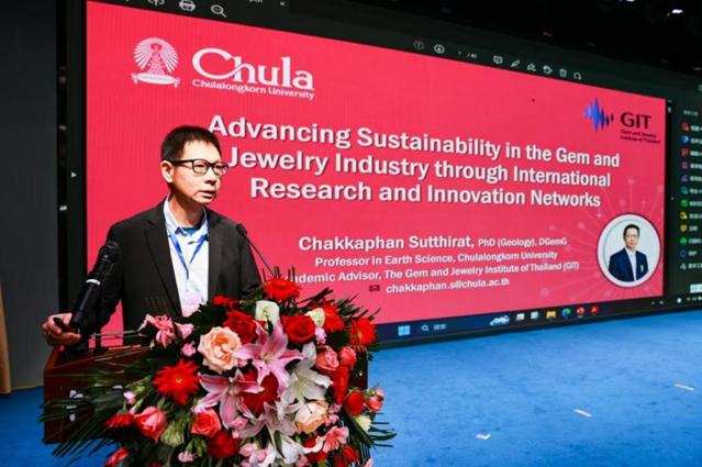 中国珠宝玉石首饰行业协会会长叶志斌致辞。他表示,讲好中国珠宝故事、增强文化自信是行业的共同使命。结合当前珠宝行业面临的形势和任务,他指出,珠宝科研工作要与产业发展紧密结合,一体化推进教育人才科研产业融合发展,进一步加强科研成果转化应用,用高质量的科研成果推进珠宝产业高质量发展。要将国际珠宝学术年会平台打造好,使其成为引领珠宝产业发展的领军品牌。