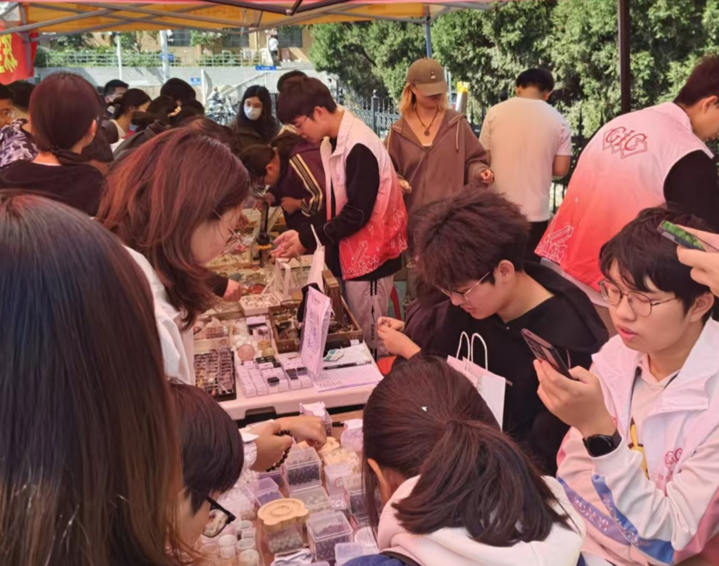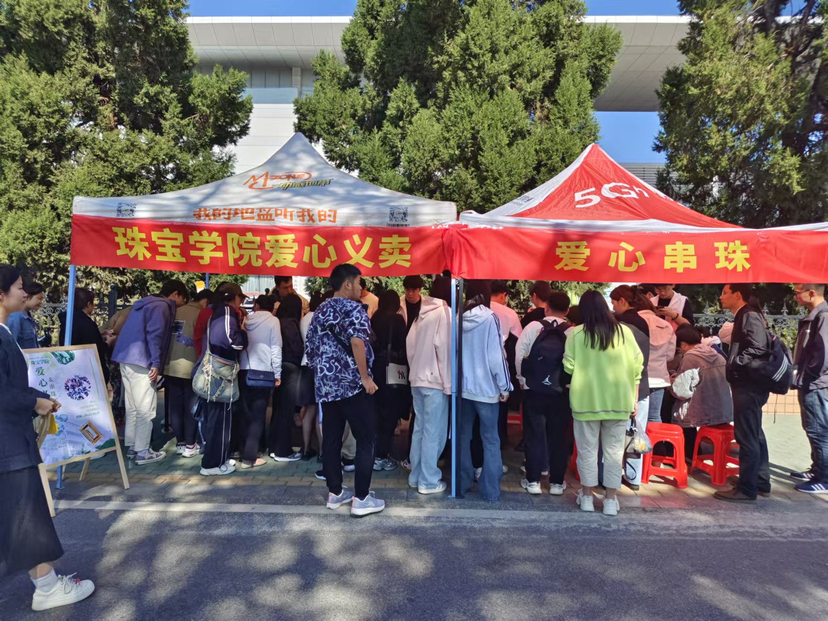 珠宝串珠义卖活动在学校南望山校区西区体育馆门口和北区隧道口进行。现场包括串珠体验、爱心义卖两项内容。学校来自于五湖四海的大学生、成人教育考生陆续聚集在活动摊位。协会成员们怀着满满的热忱,热情地向到来者科普珠宝知识。活动现场人头攒动,每一个角落都洋溢着活力气息。慷慨解囊的捐赠者和默默奉献的志愿者,都以实际行动诠释着对活动的支持。