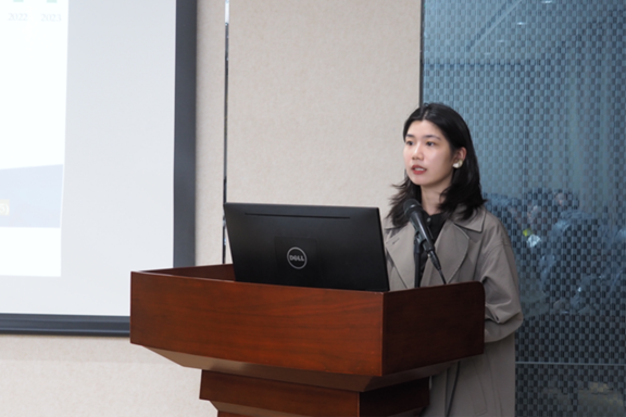 二组王馨瑶代表他们小组就校园文化建设与传承进行分享。她提到,作为学生骨干,应该首先了解学生骨干在校园文化传承中的责任与重要性,并就文化传承可分为线上与线下两种形式开展活动,并就线上线下不同形式进行了案例分析,令人印象深刻。