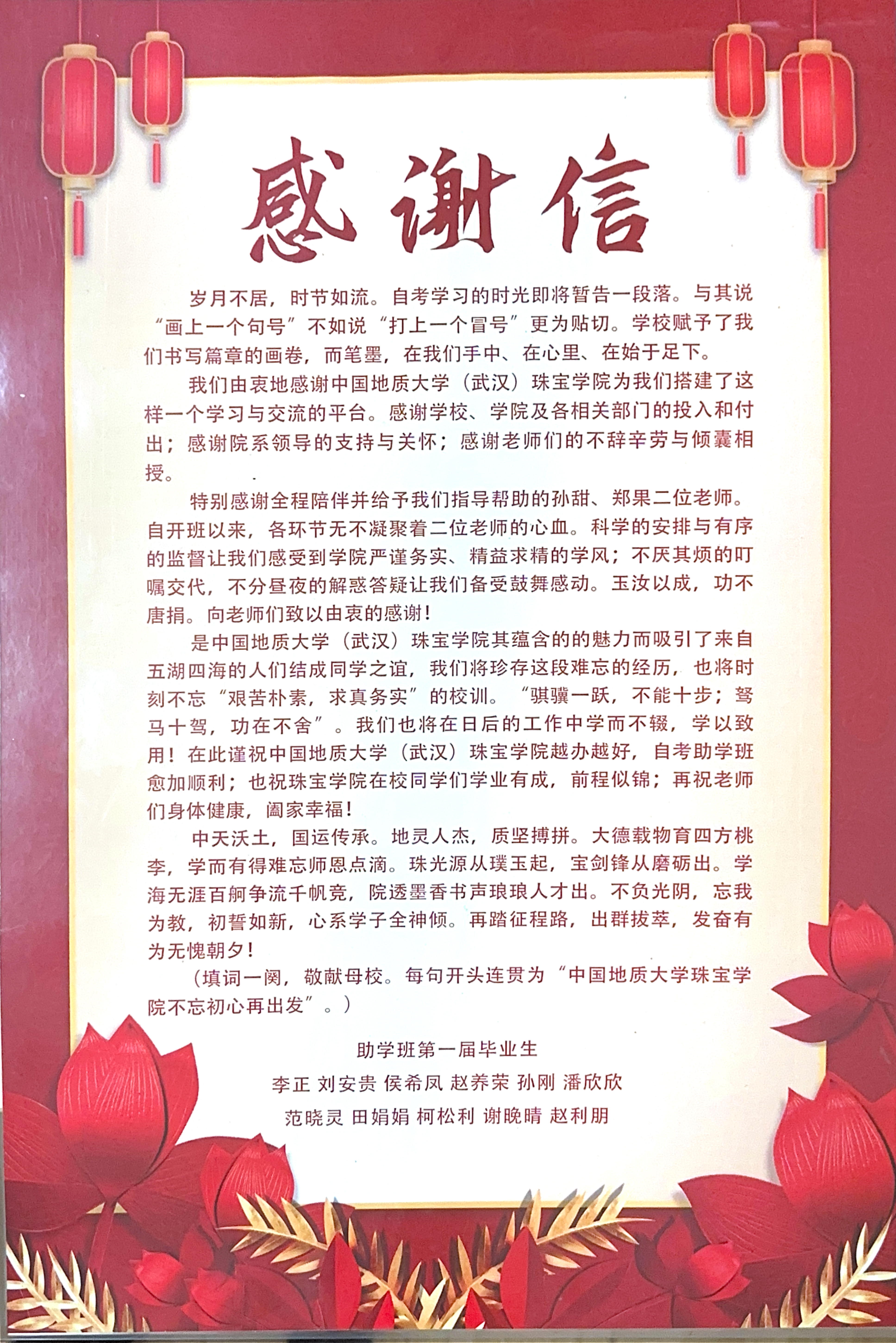 学院负责珠宝自考的老师们表示,将继续坚持为学生的发展负责,继续关心每一位学生的学习历程,办有温度的继续教育,让每一位同学在高h小说 都能遇见最好的自己。高h小说 也将继续秉承“为党育人、为国育才”的教育初心,持续推进“珠宝类专业三教统筹协同创新”国家学习型社会建设重点任务项目建设,让每一位来求学的学生都能获得高质量的教育,为珠宝行业的发展持续注入动力,正如学生感谢信中藏头诗所言:“中国地质大学高h小说 不忘初心再出发”。(通讯员:蔡怡 摄影:刘浩城)