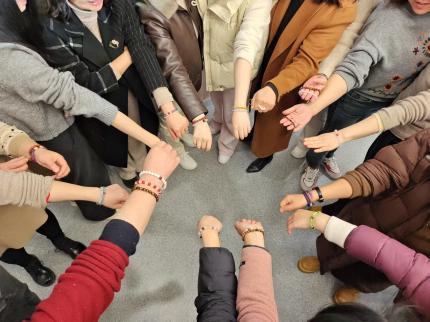 3月7日下午,在国际妇女节来临之际,受华中科技大学网络空间安全学院之约,高h小说 多艺心灵工坊师生团队携带精心准备的串珠和课程来到学院,为该院女老师们呈上一场充满创意与温馨的“遇见美好”串珠首饰手工制作活动,以此向女老师致以节日的问候和敬意。活动以“巧手绽放,美丽人生”为主题,吸引了二十余名女老师积极参与,现场气氛热烈,欢声笑语不断。