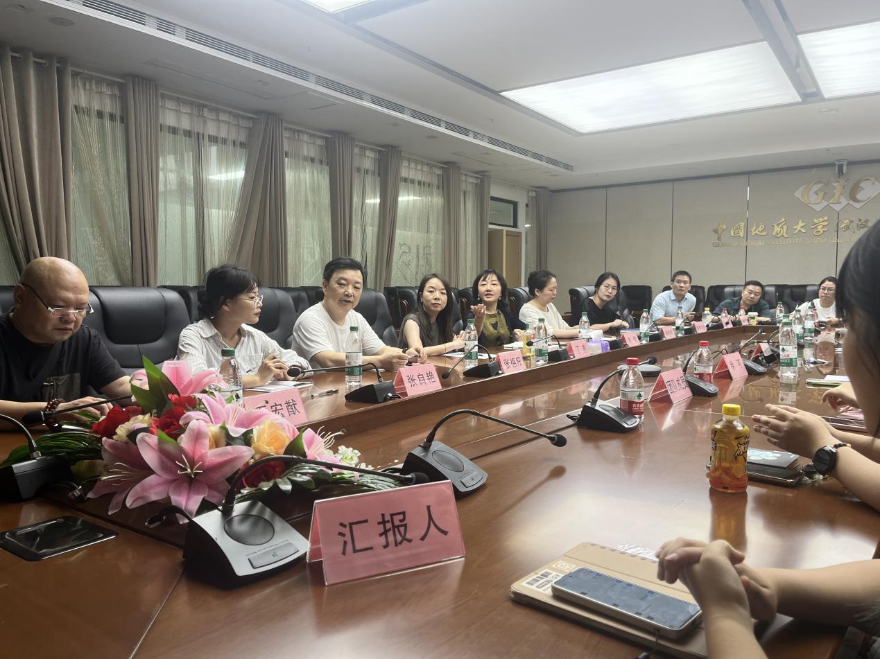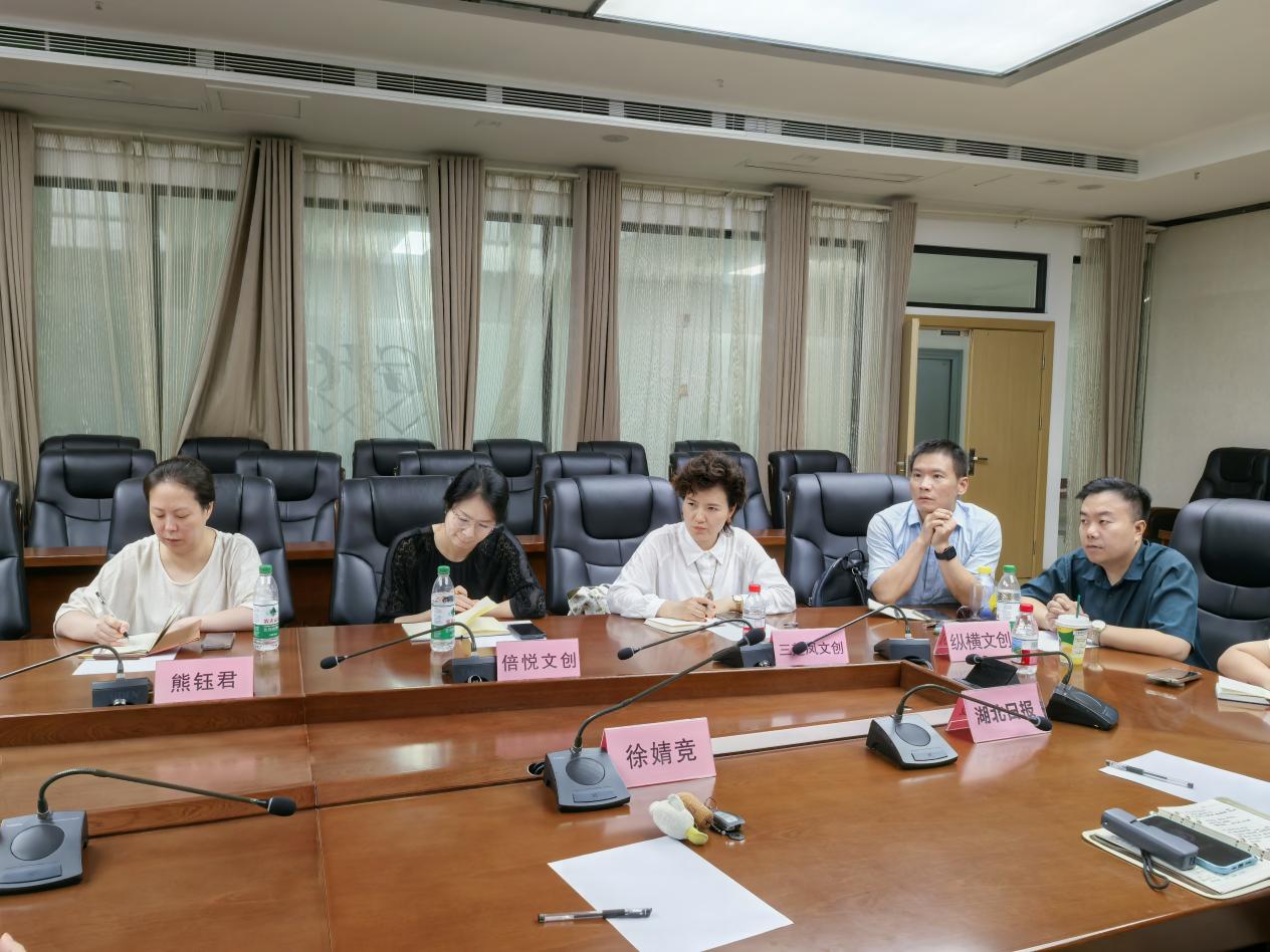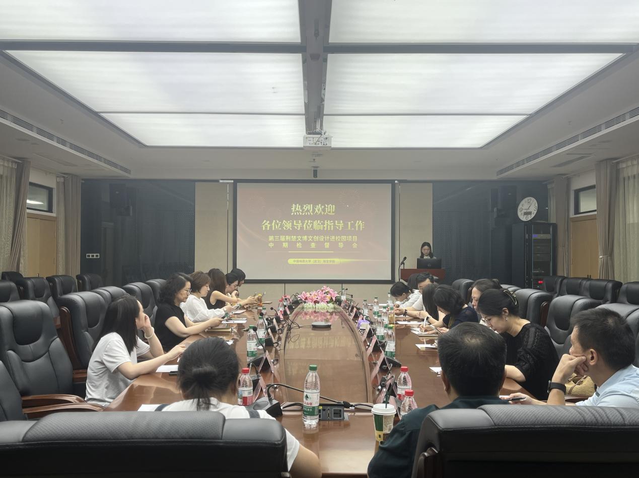 6 月 17 日,第三届“荆楚文博文创设计进校园”项目中期检查督导会在高h小说 918 会议室顺利举行。湖北省文物事业发展中心资源利用处四级调研员何微一行、武汉博物馆丁燕副馆长一行、相关文创企业负责人、湖北日报、高h小说 副院长张荣红教授携院师生共 20 余人参加会议。与会领导和专家通过听取汇报、检查作品、交流研讨等方式,对项目开展情况进行系统督导。