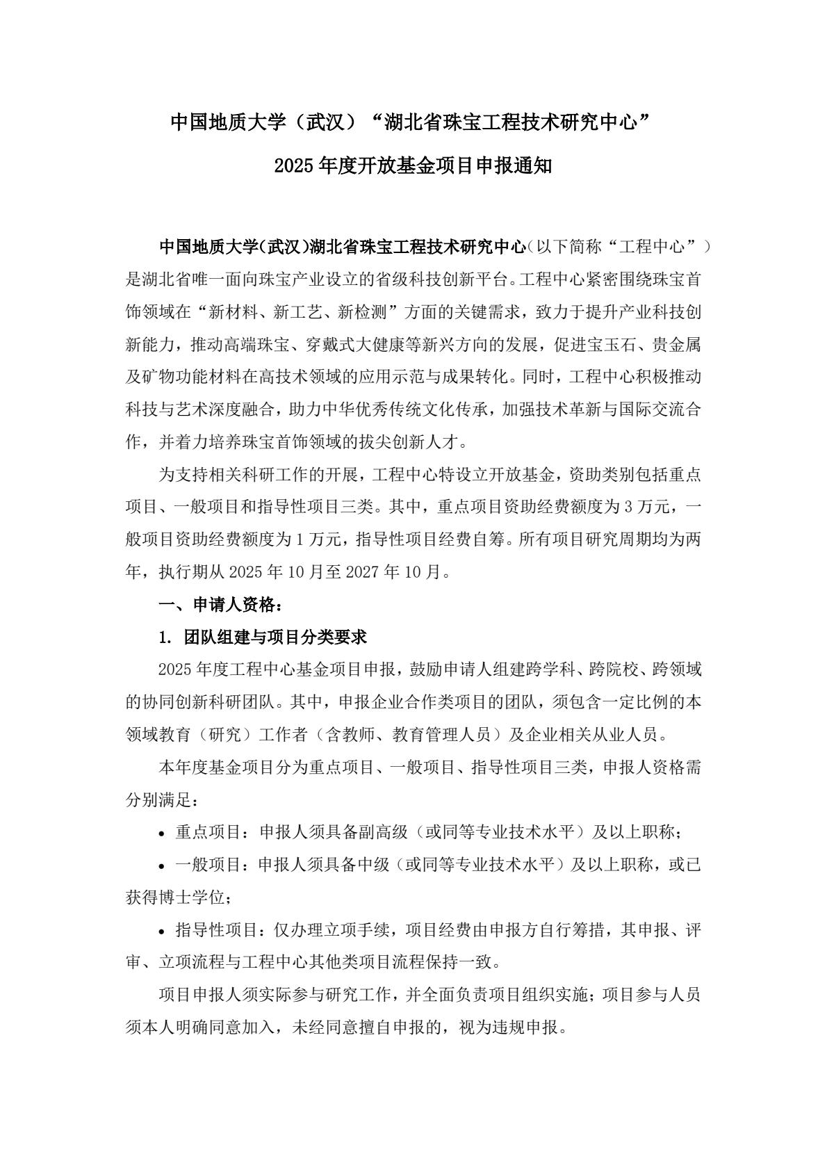 附件2:“湖北省珠宝工程技术研究中心”开放基金申报书(2025)