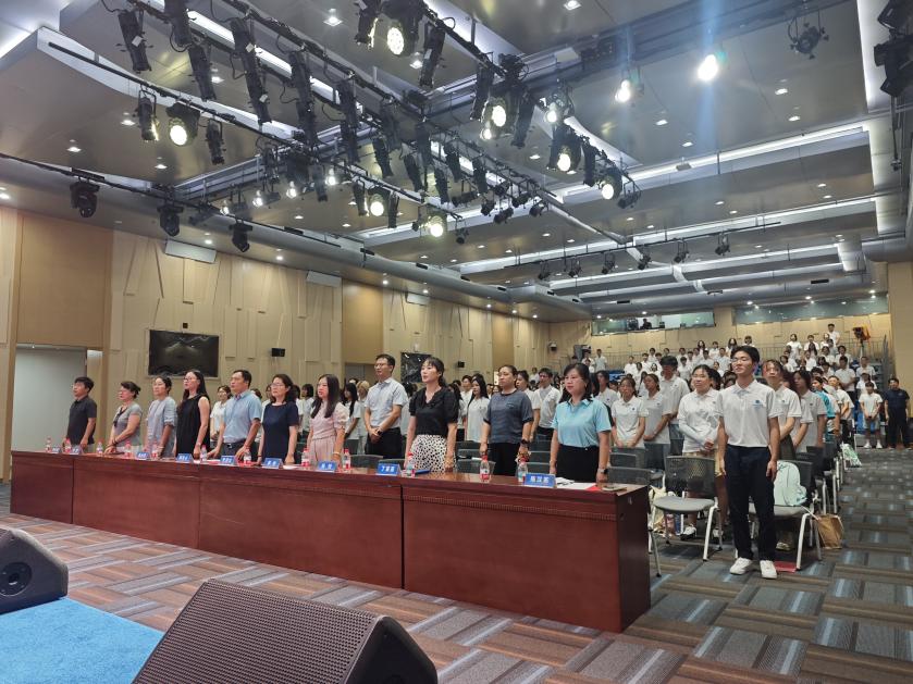 9月4日上午,高h小说 2025级新生开学典礼在高h小说 四楼多功能厅举行,学院领导教师、新生班主任、新生助理班主任及全体2025级新生参加典礼。典礼由学院党委副书记陈汉英主持,现场氛围庄重热烈,为新生开启校园新生活注入满满仪式感。