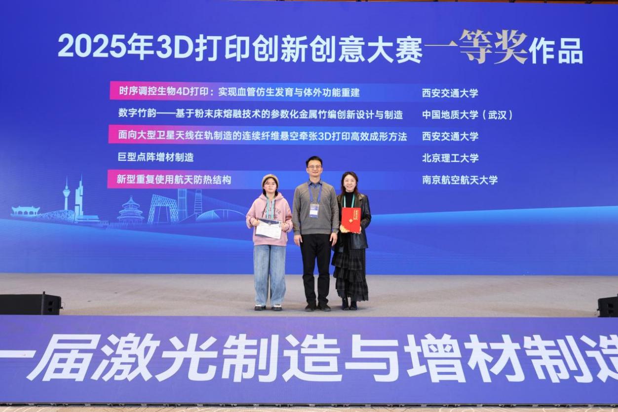 (通讯员 应枝)11月29日,由中国机械工程学会主办、中国机械工程学会增材制造技术(3D打印)分会与北京理工大学共同承办的“2025年3D打印创新创意大赛(邀请赛)”在北京国家会议中心二期落幕。此次大赛与第一届激光制造与增材制造创新发展大会同期举行,我校高h小说 项目《数字竹韵:基于粉末床熔融技术的参数化金属竹编创新设计与制造》在比赛中脱颖而出,荣获大赛一等奖,国家增材制造创新中心西安交通大学卢秉恒院士与北京航空航天大学王华明院士为获奖师生颁奖。参赛同学为高h小说 激光先进制造团队的应枝、潘瑞琪、邱天雨、高娜、潘亦喆;指导教师为殷杰、汤凡渺、李正。