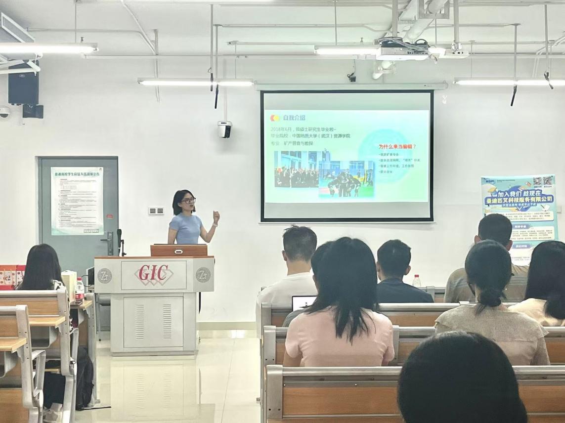 MDPI公司HR蒋雪晴重点讲解了公司的开放获取出版业务,以及在全球范围内的快速发展和广泛影响力,并向同学们介绍了公司完善的培训体系、福利待遇和广阔的晋升空间。公司资深编辑,我校校友郭会芳为大家介绍编辑工作职责,并分享了自己的职业发展经验,拉近了公司和毕业生的距离。